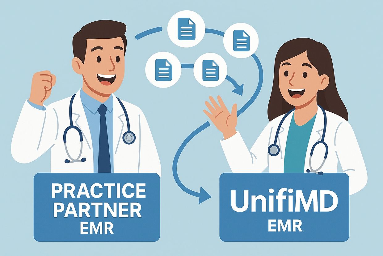 Your Partner EMR data is extracted and imported into UnifiMD. There are options for discrete data conversions as well as text files and .pdf files. Old data is stored as unique documents in the UnifiMD patient chart making viewing, printing, faxing, and emailing extremely easy.